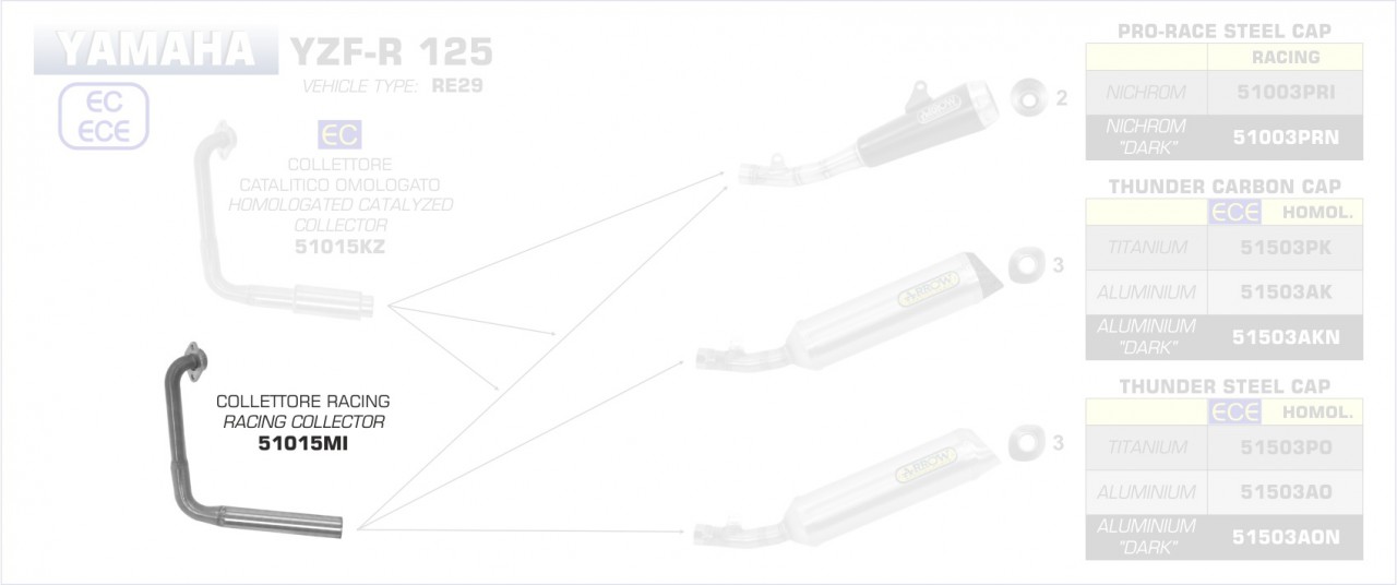 51015MI-Arrow Racing Krümmer Yamaha YZF-R 125 17-18 Menge