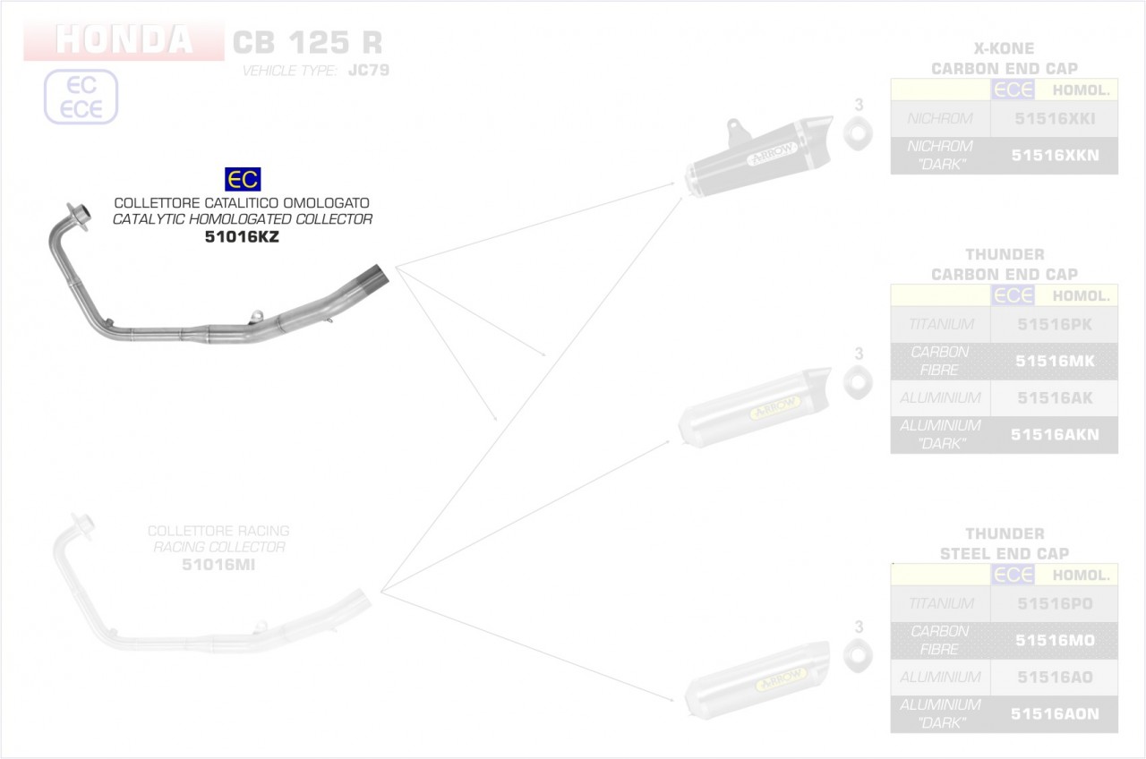 51016KZ-Arrow Krümmer mit Kat Honda CB 125 R 18-19 Menge