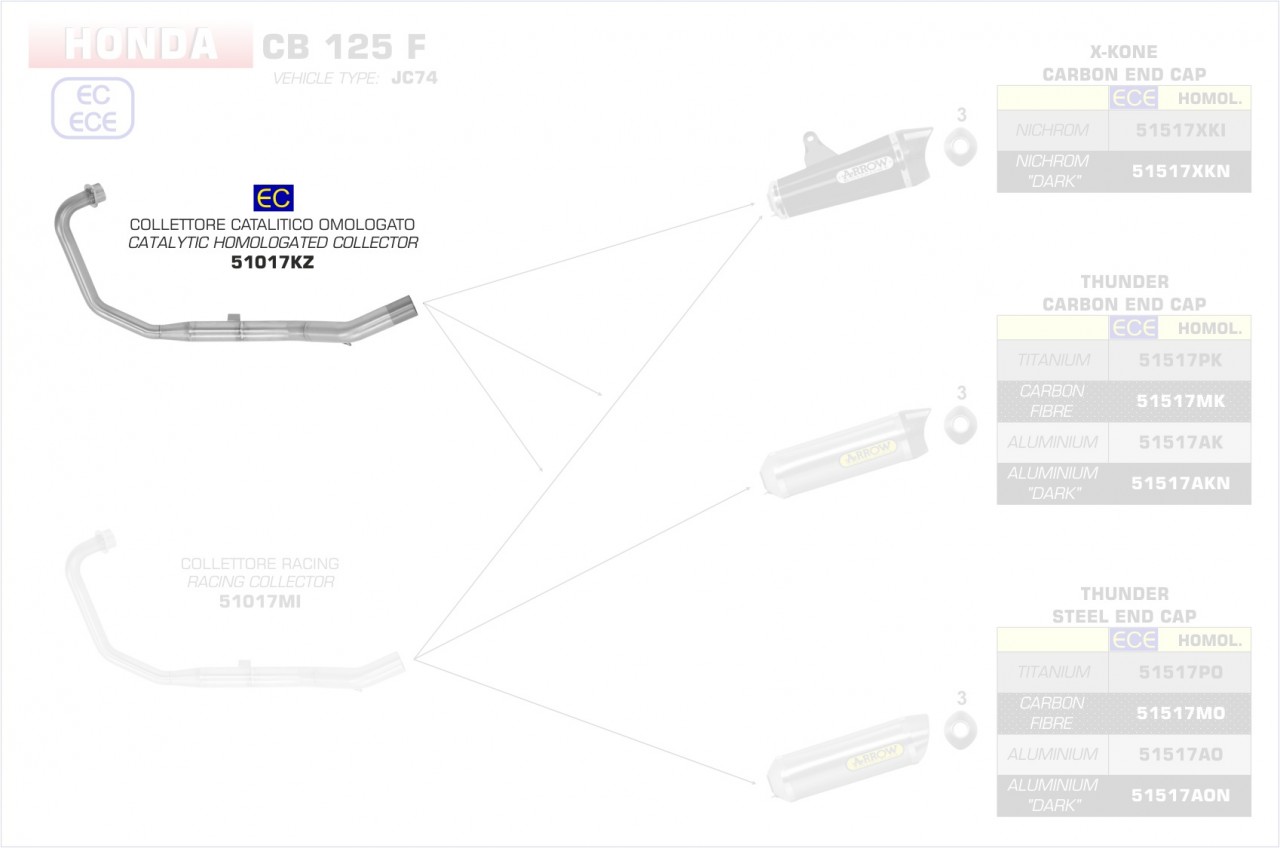51017KZ-Arrow Krümmer mit Kat Honda CB 125 F 17-19 Menge