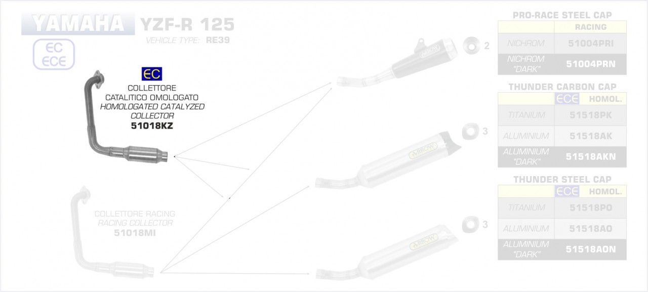 51018KZ-Arrow Krümmer mit Kat Yamaha YZF-R 125 19-20/MT-125 2020 Menge