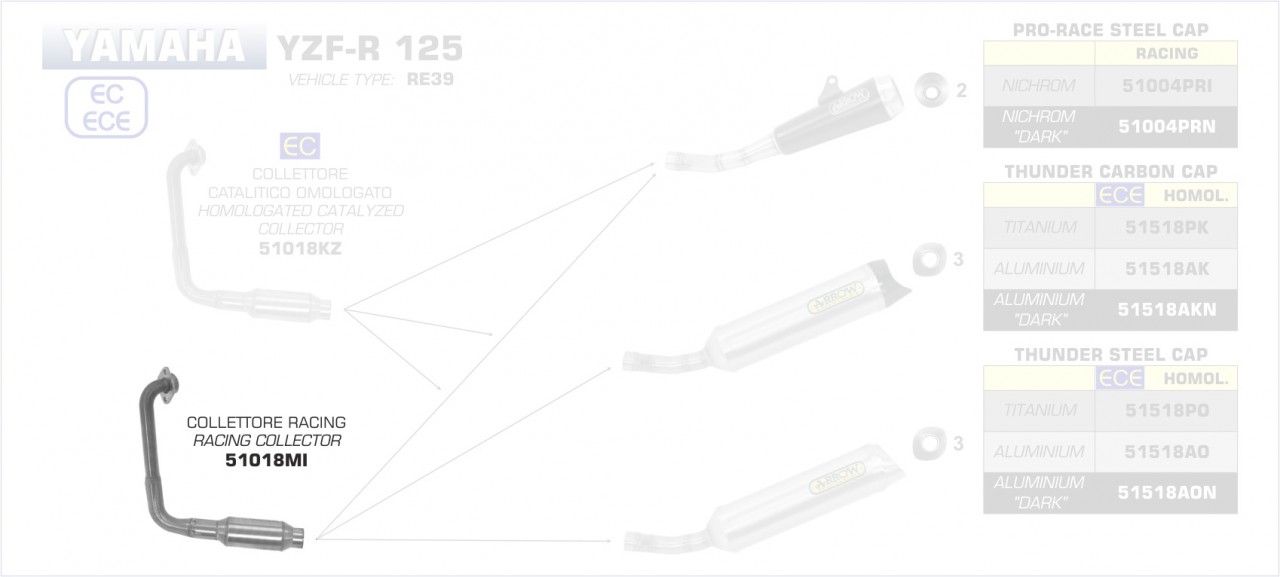 51018MI-Arrow Racing Krümmer Yamaha YZF-R 125 19-20/MT-125 2020 Menge