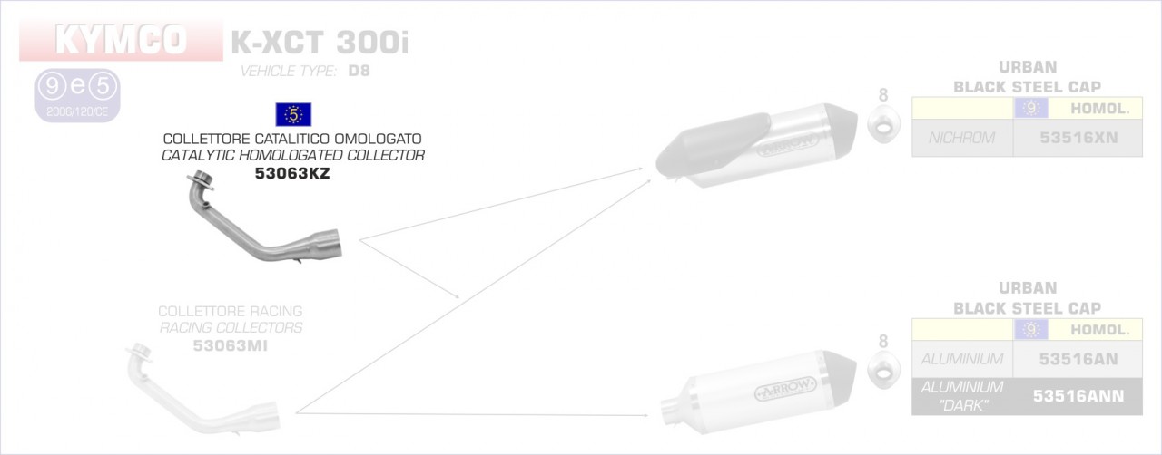 53063KZ-Arrow Krümmer mit Kat Kymco K-XCT 300i ´13/16