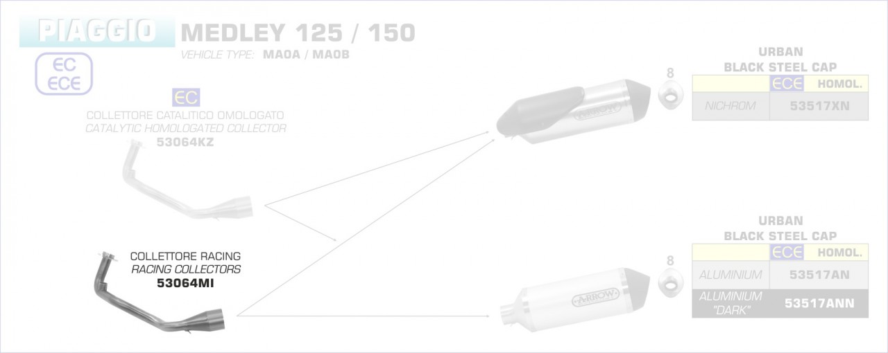 53064MI-Arrow Krümmer Piaggio Medley 125/150 ´16-19 Menge
