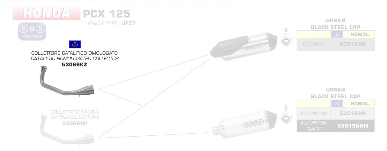 53066KZ-Arrow Krümmer mit Kat für Urban Endschalldämpfer Honda PCX 125/150 ´14/1 Menge