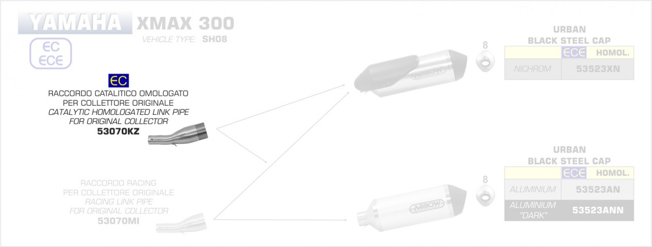 53070KZ-Arrow Verbindungsrohr mit Kat YAMAHA X-MAX 300 17-