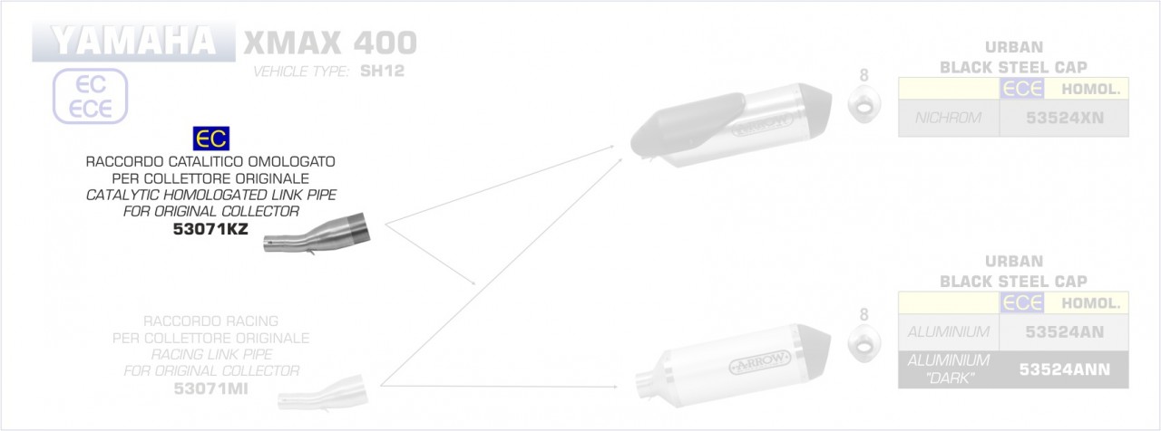 53071KZ-Arrow Verbindungsrohr mit Kat Yamaha XMax 400 (SH12) 17-