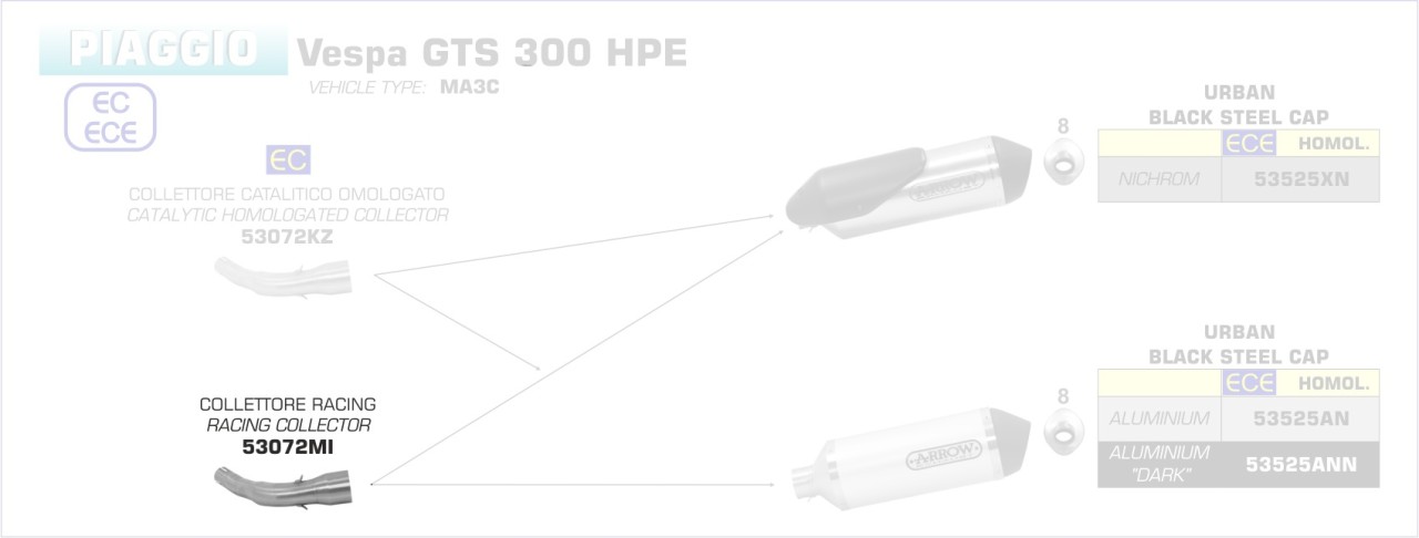 53072MI-Arrow Verbindungsrohr ohne Kat VESPA GTS 300 ’17-18/HPE 19-20