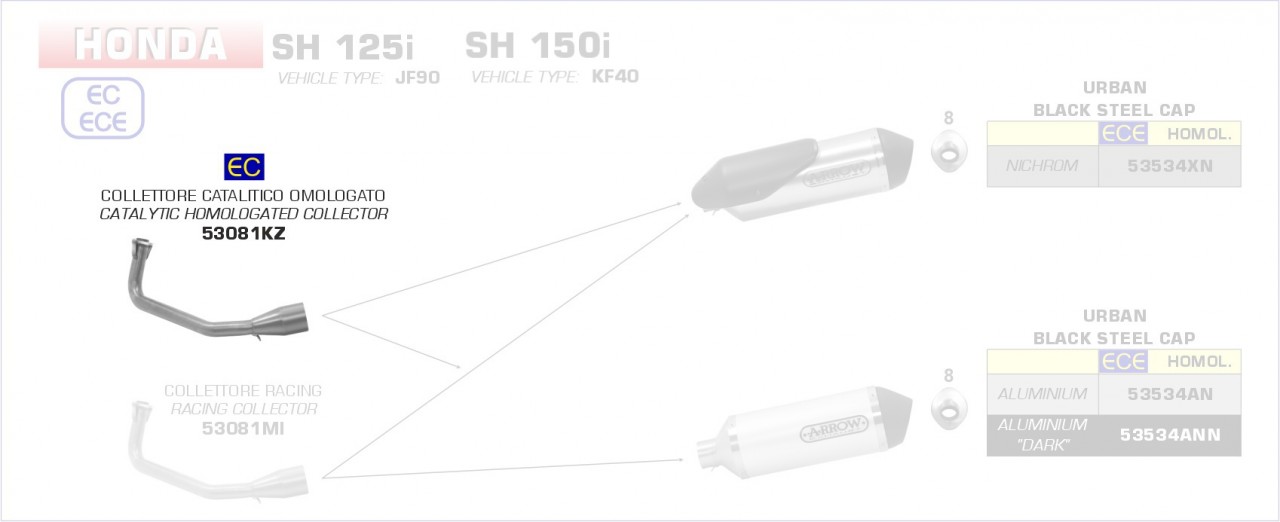 53081KZ-Arrow Krümmer mit Kat Honda SH 150/125 i 20- Menge