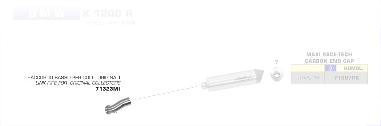 71323MI-Arrow Zwischenrohr niedrig ür Originalkrümmer BMW K 1200 R 05-08