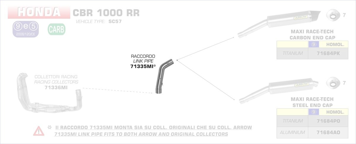 71335MI-Arrow Zwischenrohr, zentral Honda CBR 1000 RR 06-07 Menge