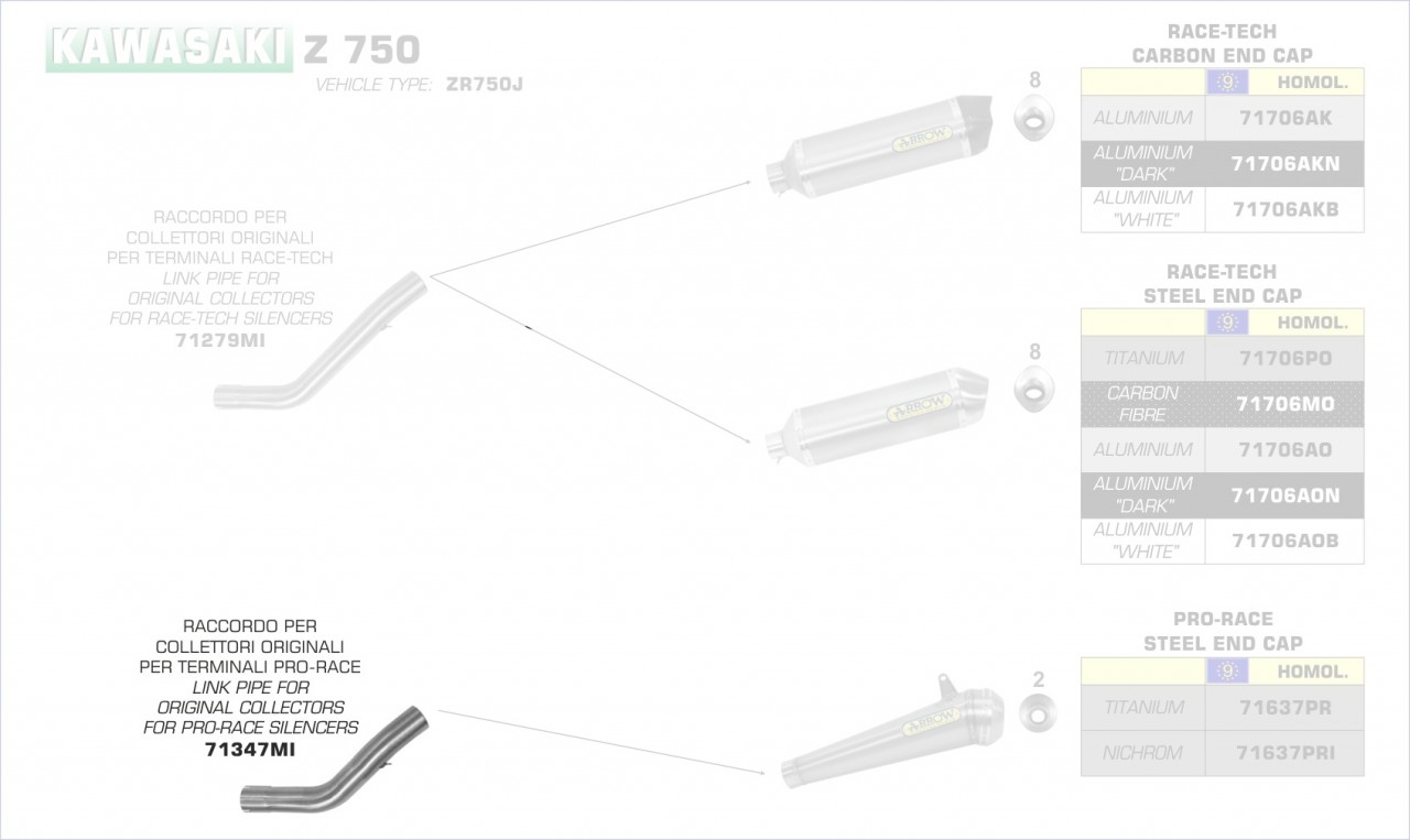 71347MI-Arrow Zwischenrohr niedrig ür Originalkrümmer Kawasaki Z 750 S 05-06 Menge