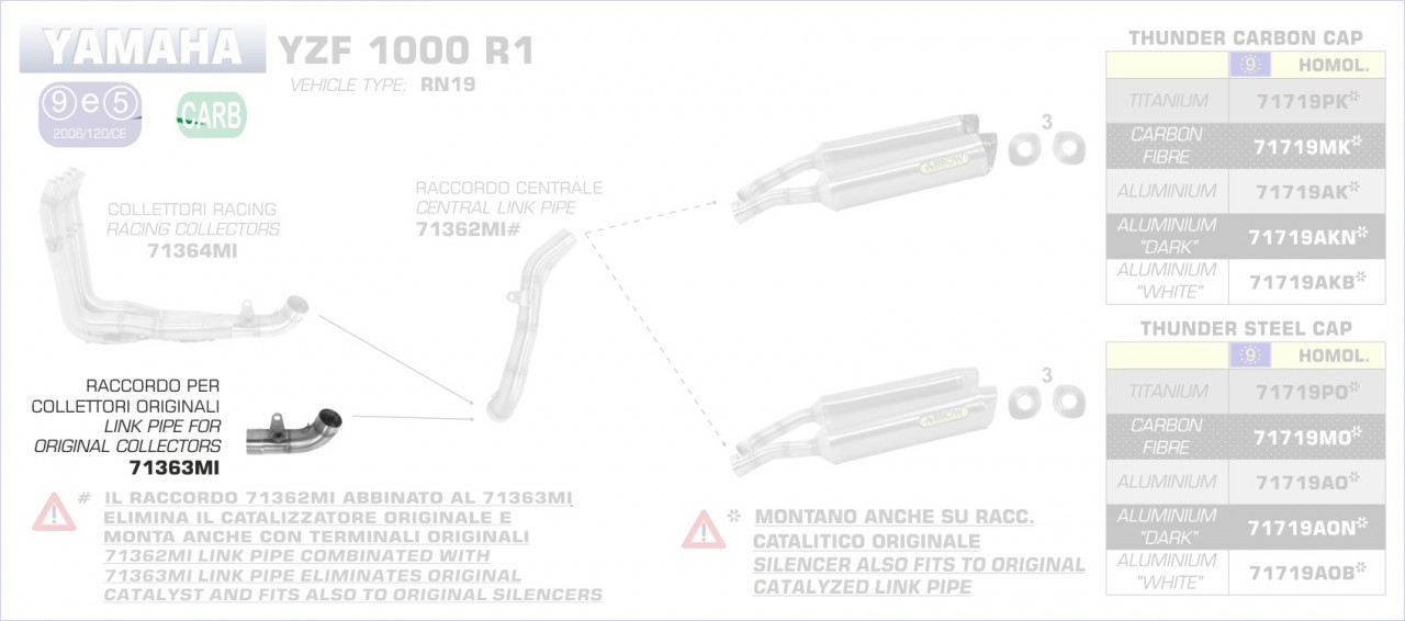 71363MI-Arrow Zwischenrohr für Originalkrümmer Yamaha YZF 1000 R1 07-08 Menge