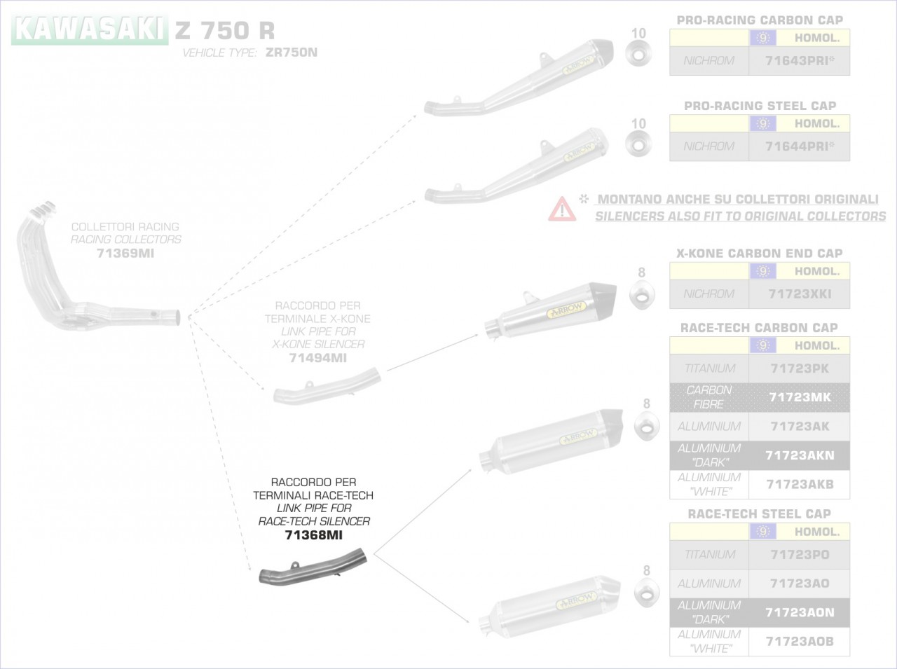 71368MI-Arrow Zwischenrohr für Endschalldämfer Race-Tech Kawasaki Z 750 R 11-14 Menge