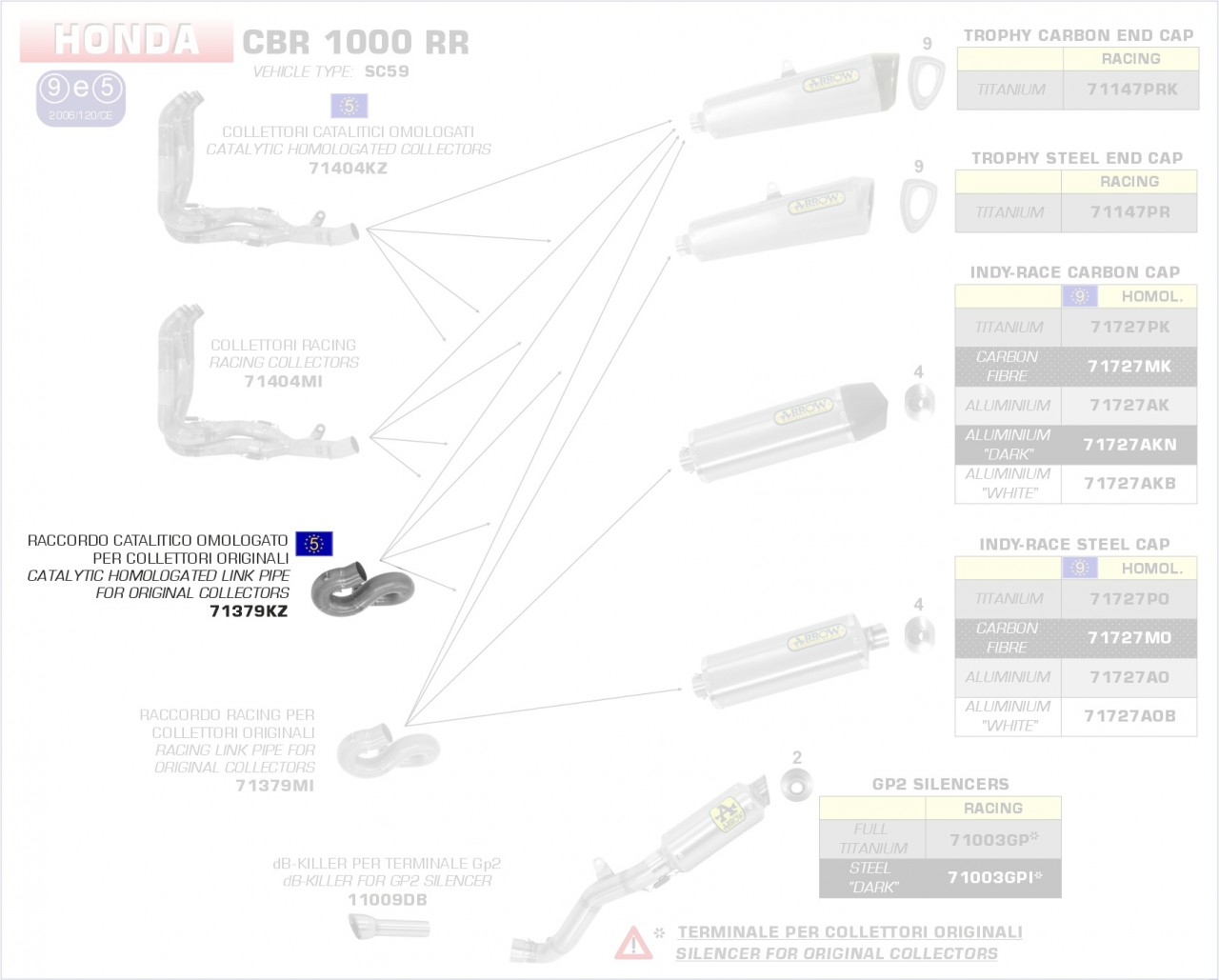 71379KZ-Arrow Verbindungsrohr mit Kat HONDA CBR 1000 RR 08 Menge