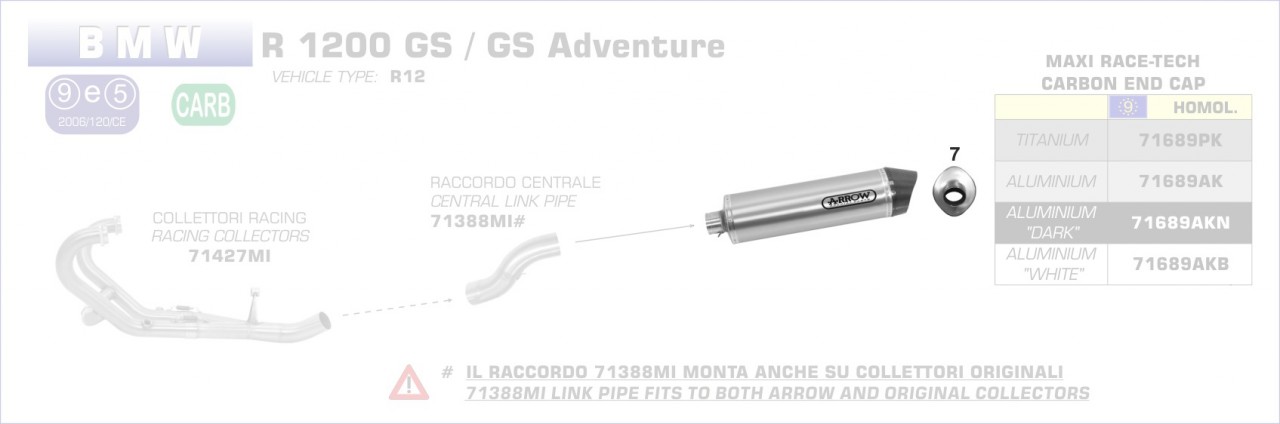 71388MI-Arrow Zwischenrohr, zentral BMW R 1200 GS / Adventure 06-09 Menge