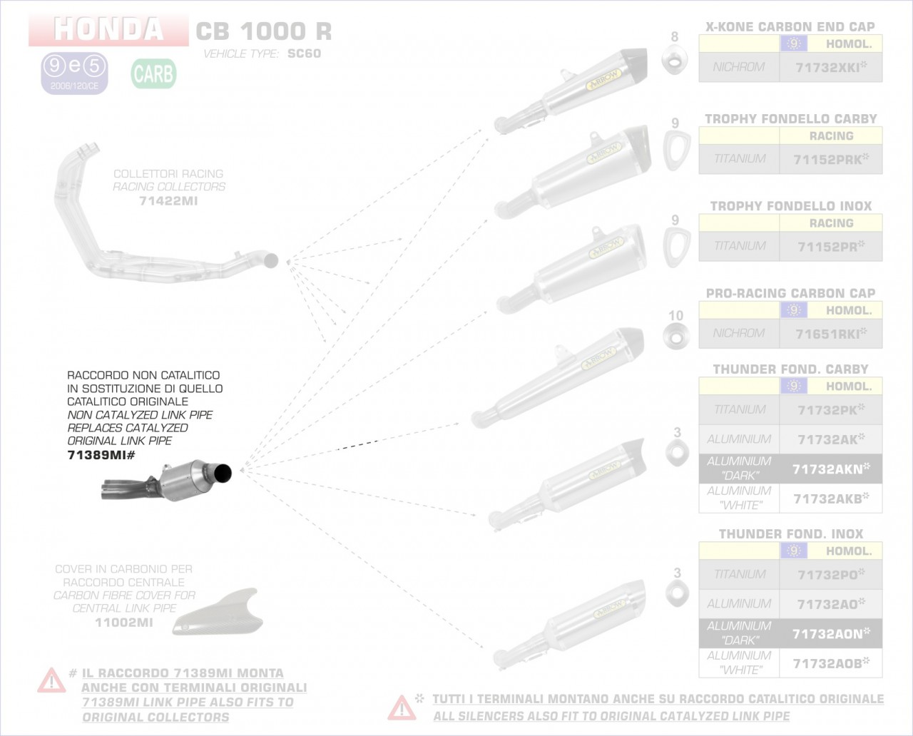 71389MI-Arrow Zwischenrohr zentral, ohne Katalysator Honda CB 1000 R 08-16 Menge