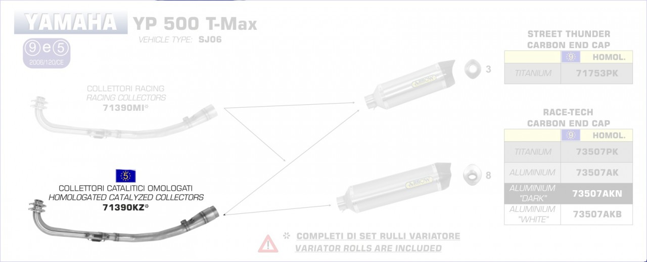 71390KZ-Arrow Krümmer mit Kat Yamaha YP 500 T-Max (SJ06) `08/11