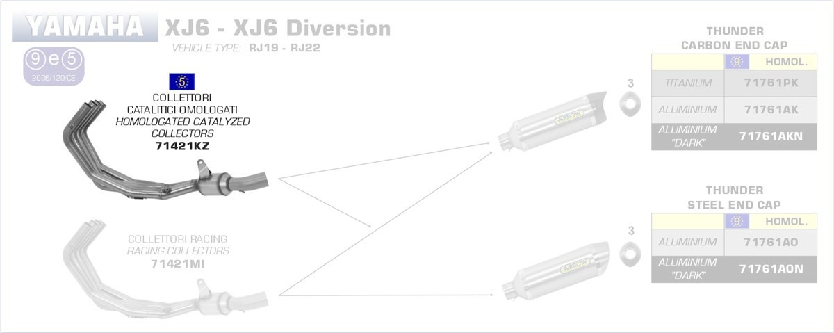 71421KZ-Arrow Krümmer mit Kat Yamaha XJ6/Yamaha XJ6 Diversion 09-13 Menge