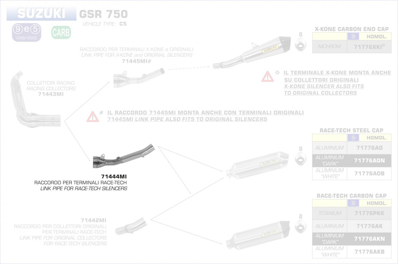 71444MI-Arrow Zwischenrohr für Endschalldämpfer Race-Tech, Works und Trophy für Menge