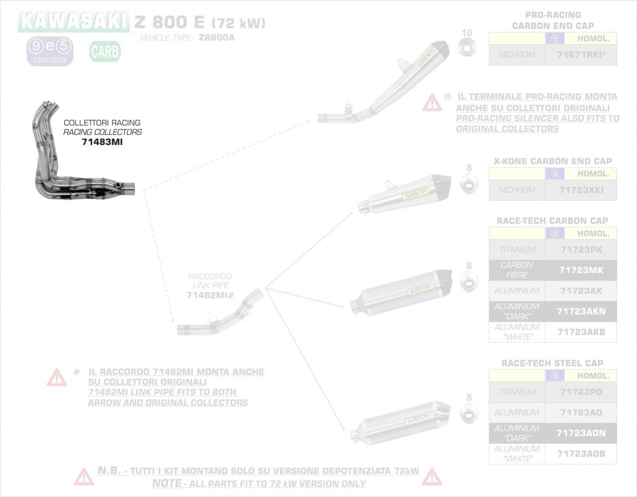 71483MI-Arrow Racing Krümmer Kawasaki Z 800 E 13-16 Menge
