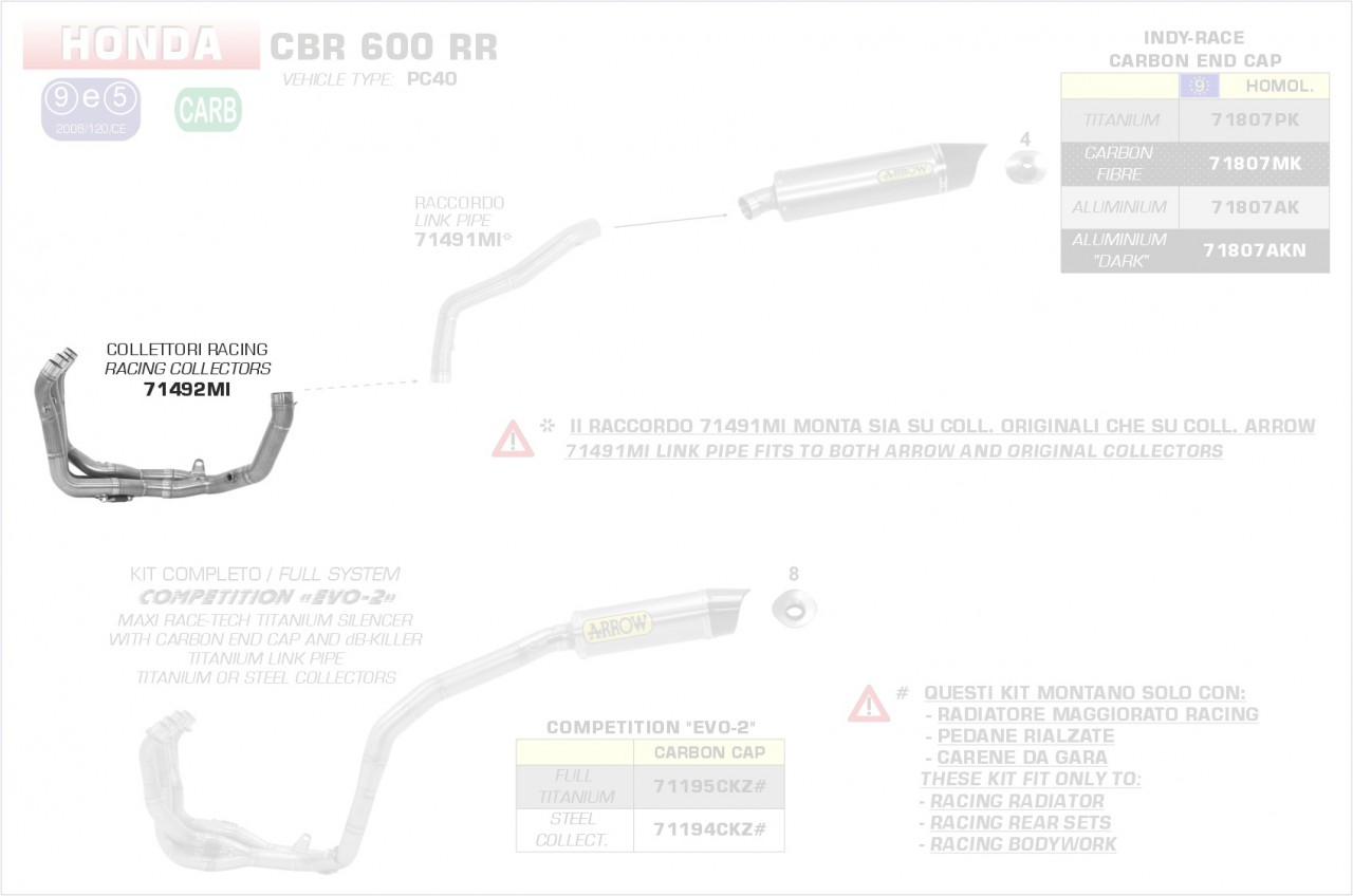 71492MI-Arrow Racing Krümmer Honda CBR 600 RR 13-16 Menge