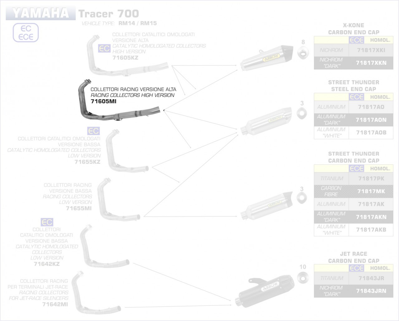71605MI-Arrow High Up Krümmer YAMAHA MT-07-Tracer 700 14-20 Menge