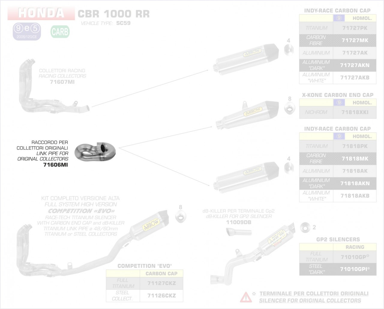 71606MI-Arrow Zwischenrohr für Originalkrümmer Honda CBR 1000 RR 14-16 Menge
