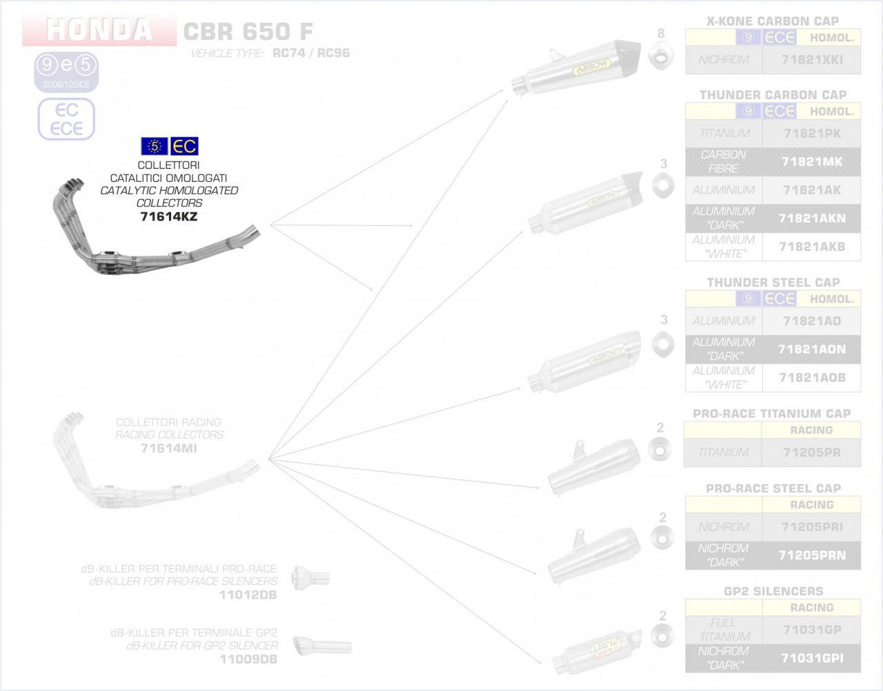 71614KZ-Arrow Krümmer mit Kat HONDA CBR 650 F 14-17 Menge