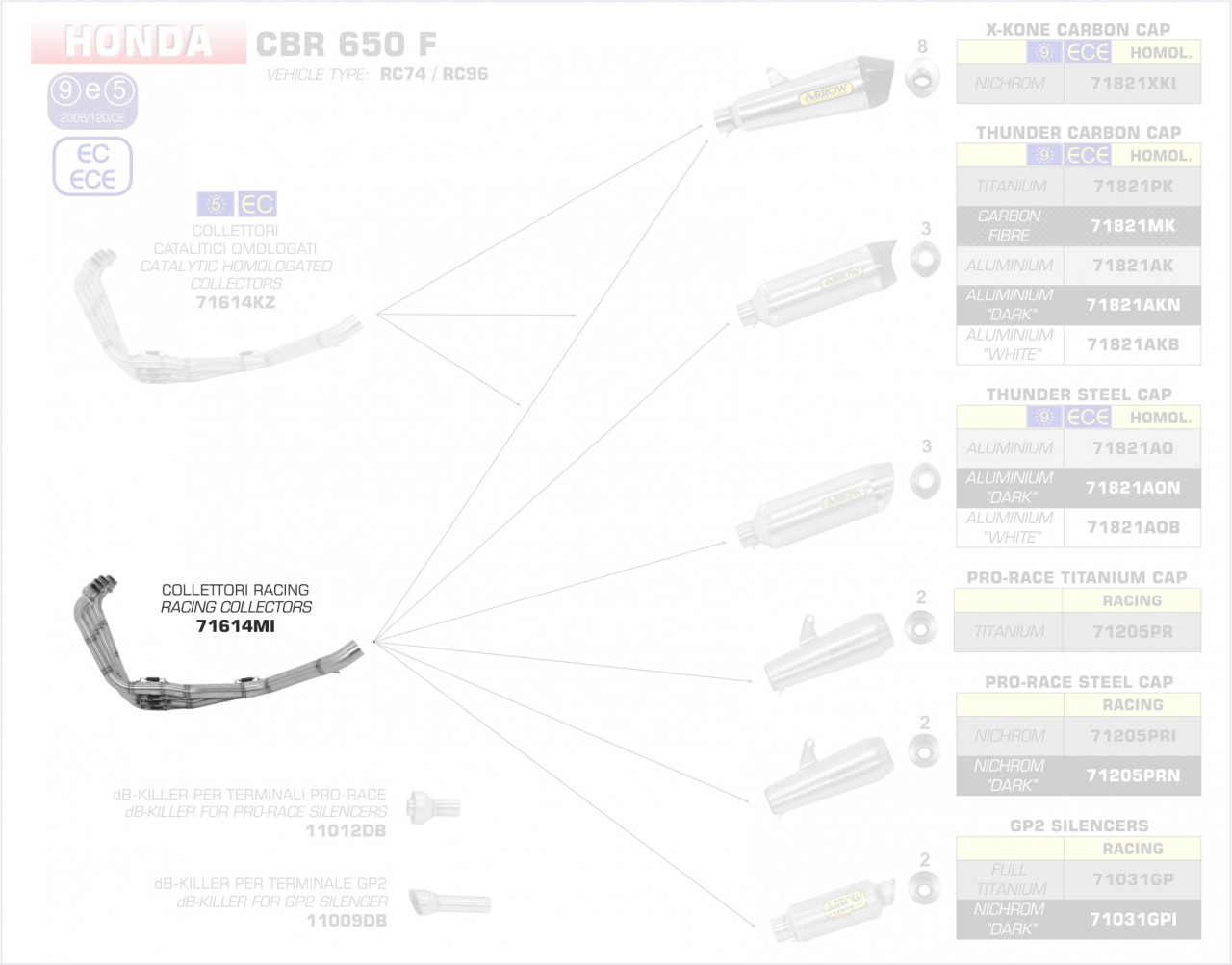 71614MI-Arrow Racing Krümmer Honda CB 650 F 14-18 Menge