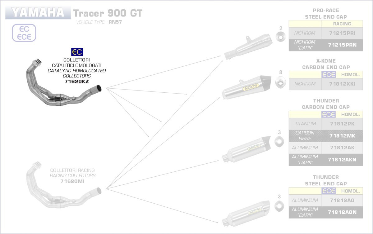 71620KZ-Arrow Krümmer mit Kat Yamaha Tracer 900 GT 18-19 Menge