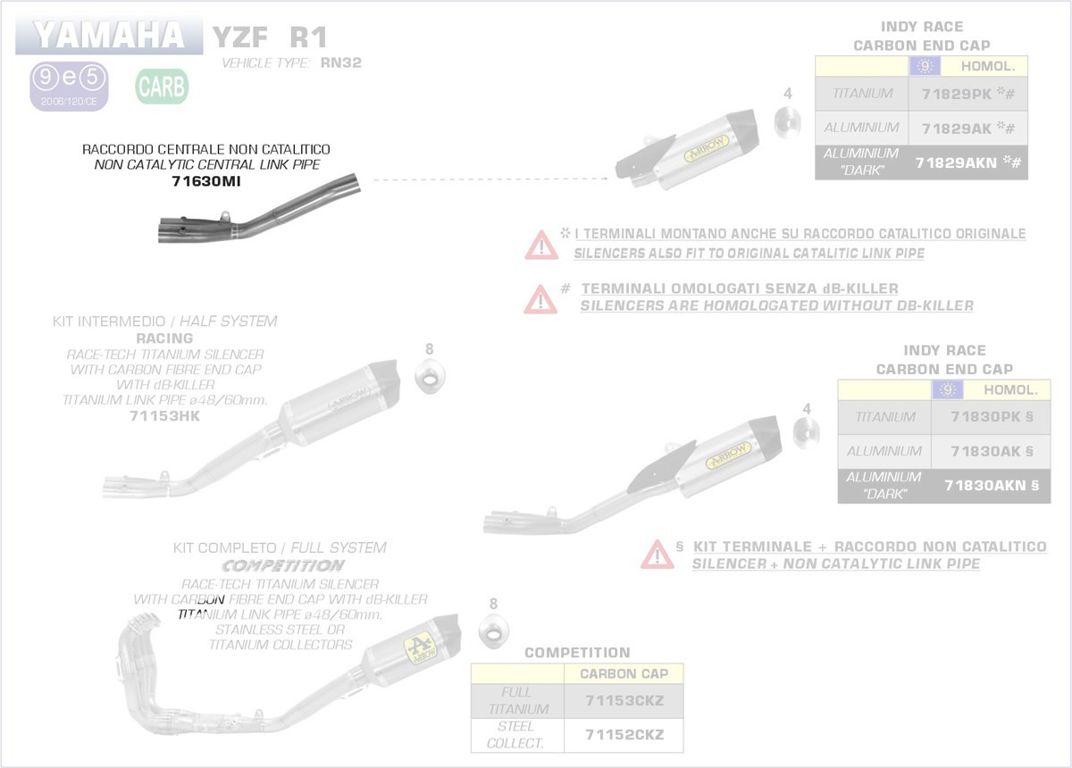 71630MI-Arrow Zwischenrohr zentral, ohne Katalysator Yamaha YZF 1000 R1 15-16 Menge