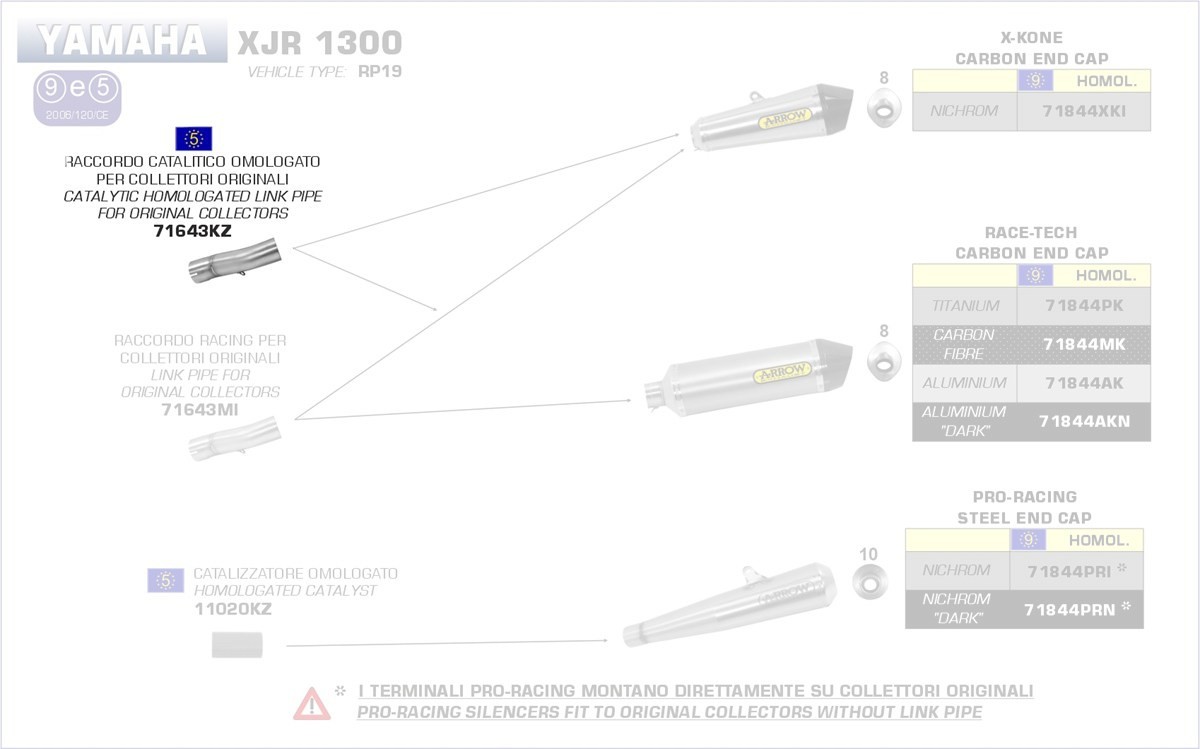 71643KZ-Arrow Verbindungsrohr mit Kat für Original- und Arrow Krümmer Yamaha XJR Menge