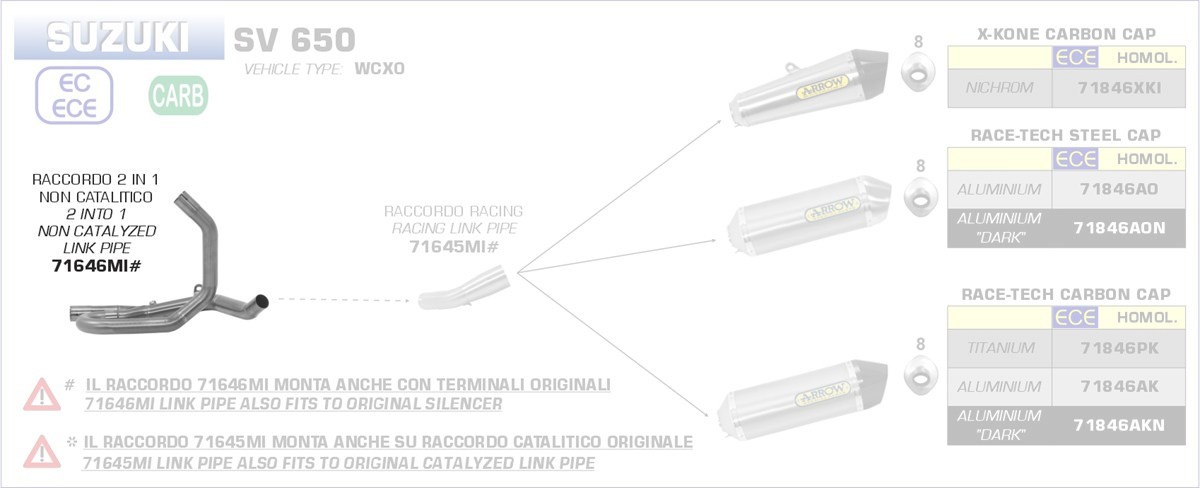 71646MI-Arrow Zwischenrohr zentral, ohne Katalysator Suzuki SV 650 16-19 Menge