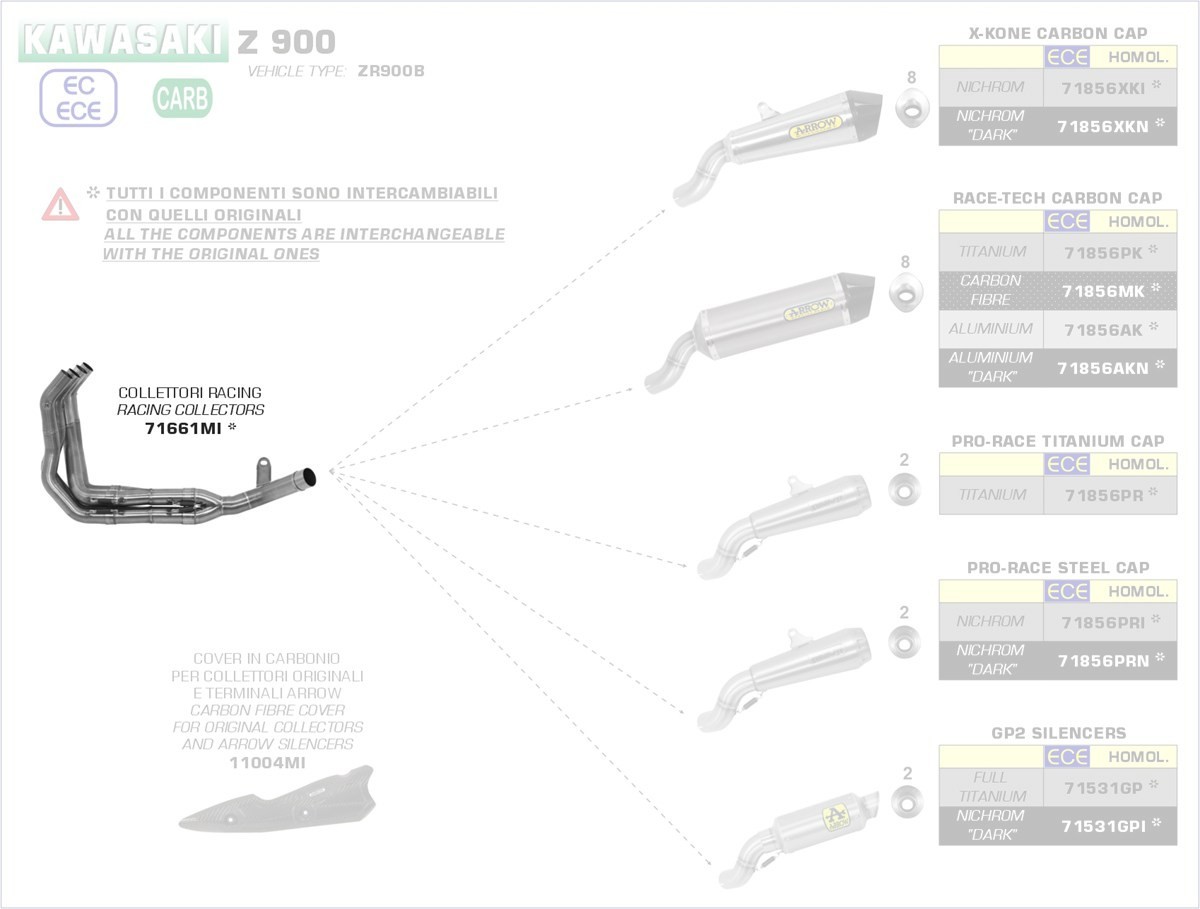 71661MI-Arrow Racing Krümmer Kawasaki Z 900 17-18 Menge