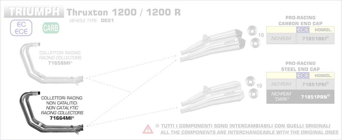 71664MI-Arrow Zwischenrohr zentral, ohne Katalysator Triumph Speed Twin 1200 19- Menge