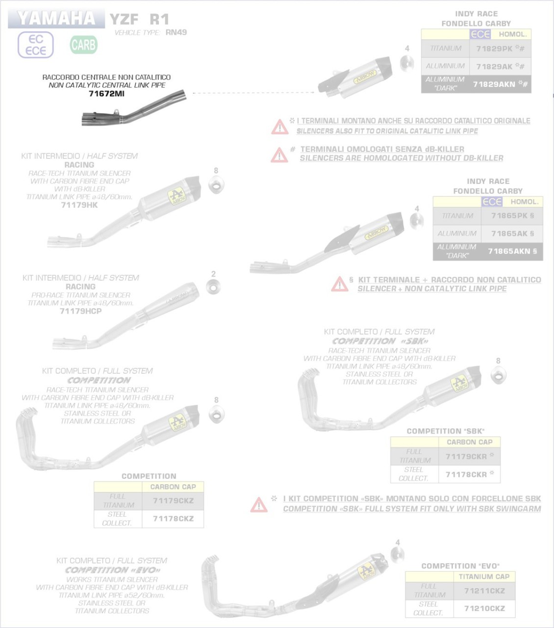 71672MI-Arrow Zwischenrohr zentral, ohne Katalysator Yamaha YZF 1000 R1 17-19 Menge