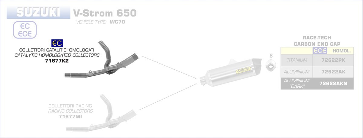 71677KZ-Arrow Krümmer mit Kat SUZUKI V-STROM 650 17-20 Menge