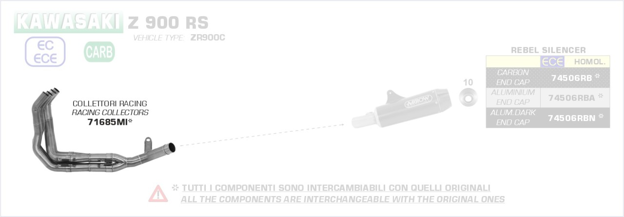 71685MI-Arrow Krümmer Edelstahl KAWASAKI Z 900 RS ’18