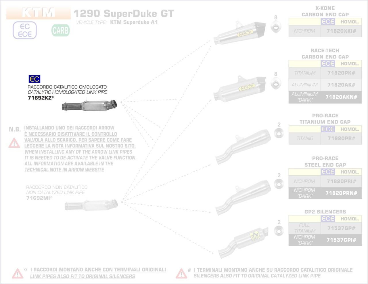 71692KZ-Arrow Verbindungsrohr mit Kat KTM 1290 SuperDuke GT 16-18 Menge