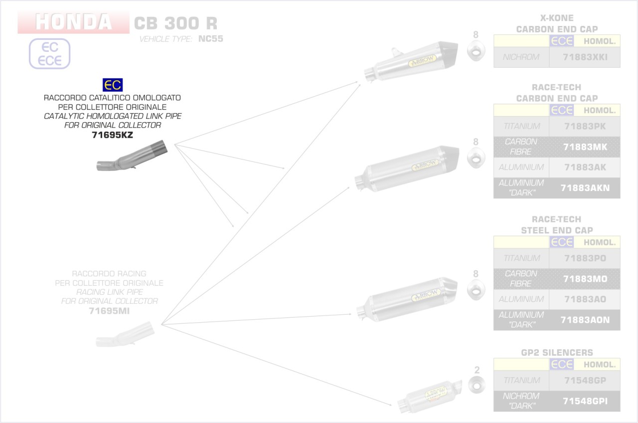 71695KZ-Arrow Verbindungsrohr mit Kat Honda CB 300 R 18 Menge