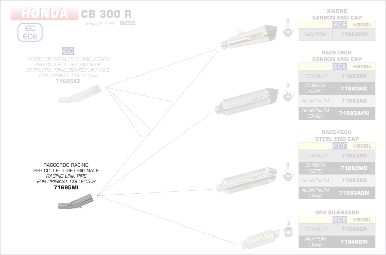 71695MI-Arrow Zwischenrohr für Originalkrümmer Honda CB 300 R 18-19 Menge