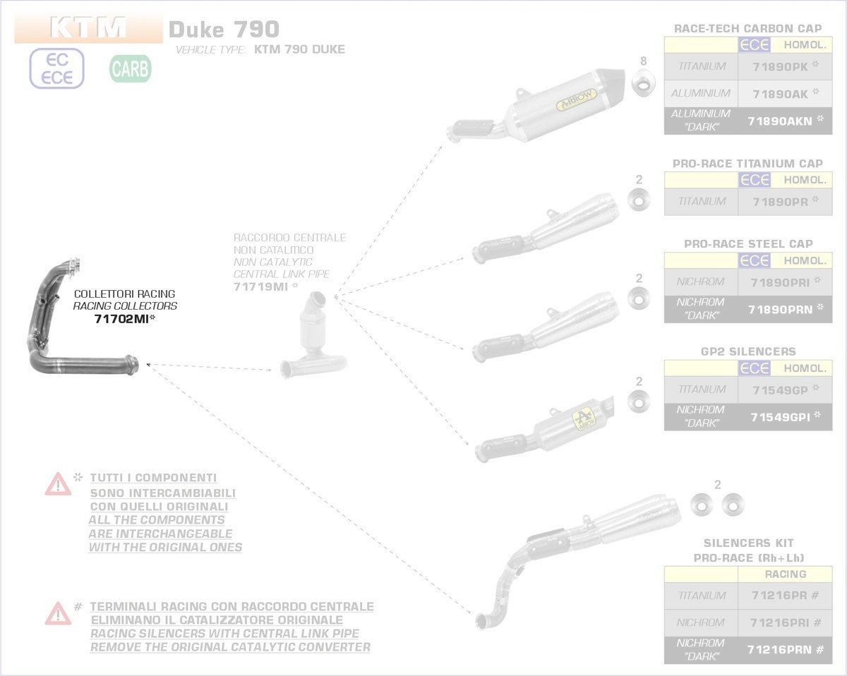 71702MI-Arrow Racing Krümmer KTM DUKE 790 18-19 Menge
