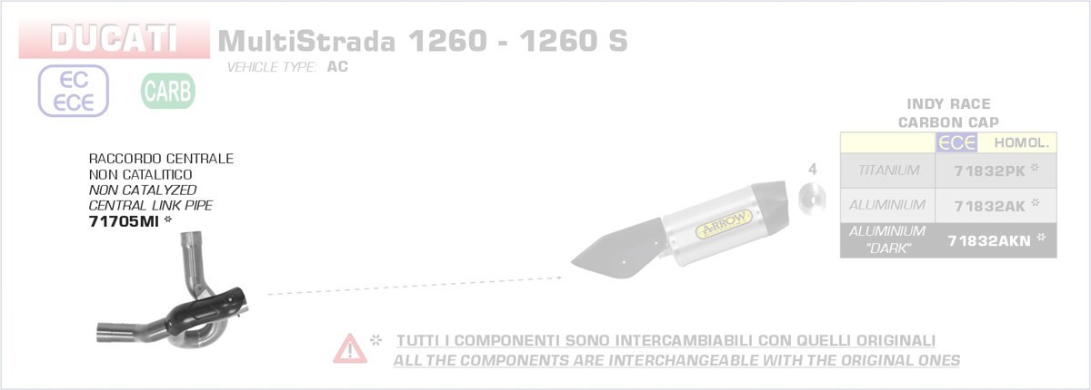 71705MI-Arrow Zwischenrohr zentral, ohne Katalysator Ducati Multistrada 1260 / 1 Menge