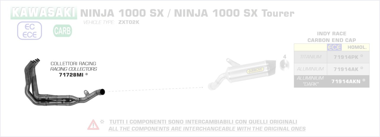 71728MI-Arrow Racing Krümmer KAWASAKI NINJA 1000 SX 20-