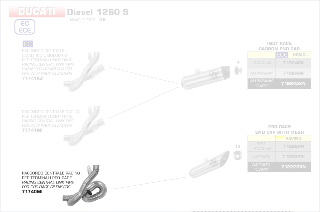 71740MI-Arrow Zwischenrohr zentral für Pro-Race Anlagen Ducati Diavel 1260 S 19-