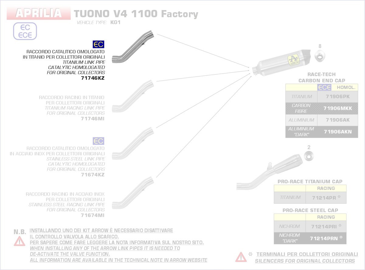 71746KZ-Arrow Verbingungsrohr mit Kat Aprilia Tuono V4 1100 Factory Menge