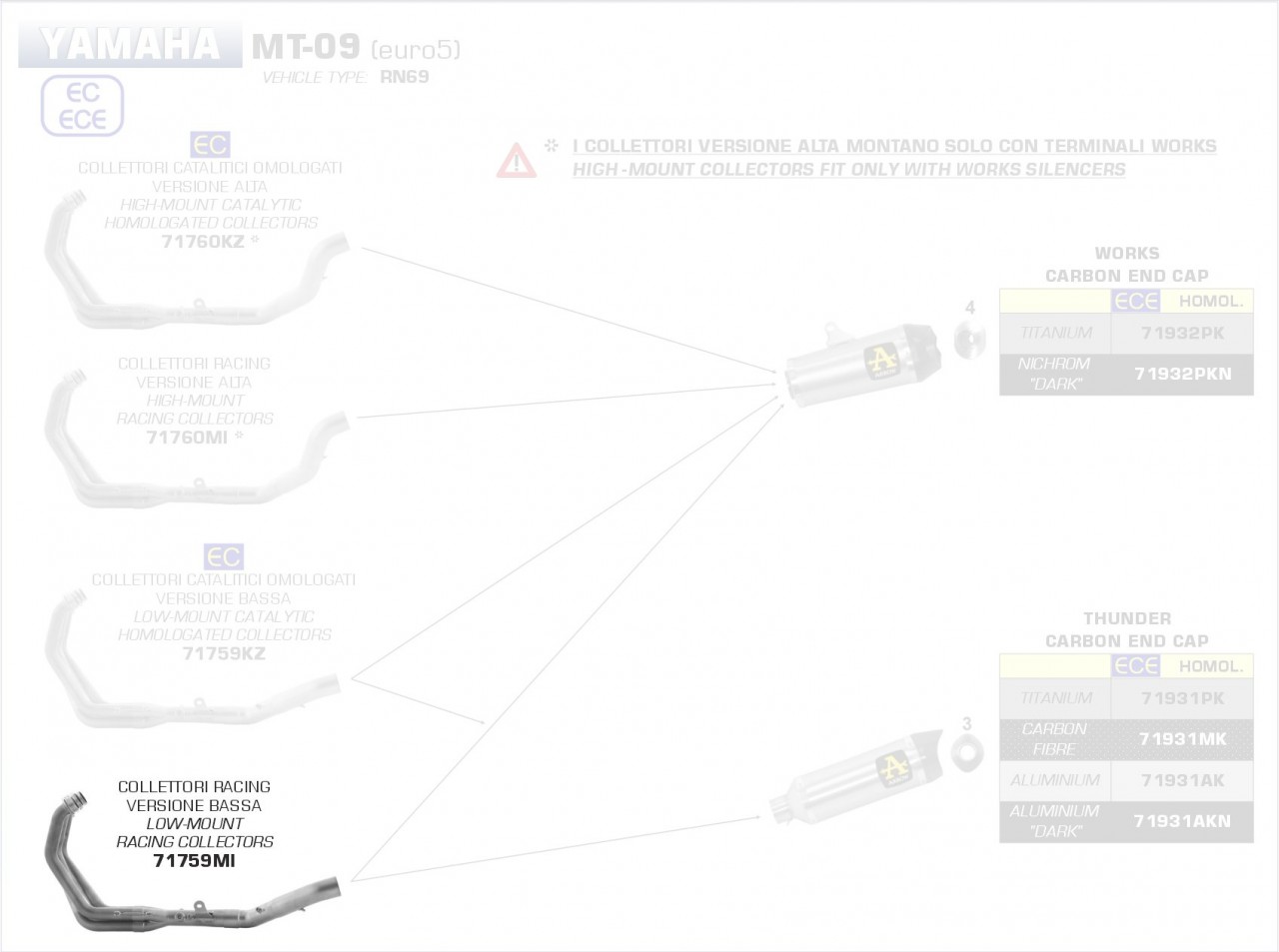 71759MI-Arrow Krümmer Low Version YAMAHA MT-09 21-23 Menge