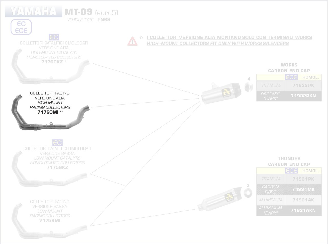 71760MI-Arrow Krümmer High Version YAMAHA MT-09 21-23 Menge