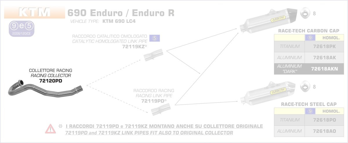 72120PD-Arrow Racing Krümmer KTM 690 SMC 09-16 Menge