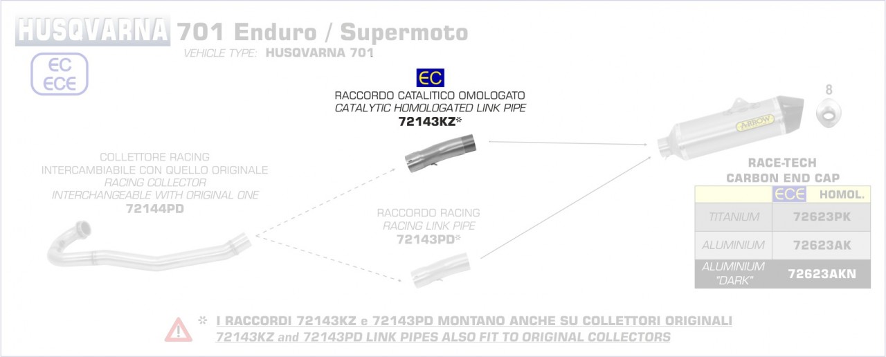 72143KZ-Arrow Verbindungsrohr mit Kat HUSQVARNA 701 ENDURO SUPERMOTO 16-20 Menge